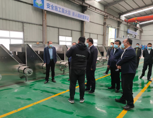 2022年4月15日上午,嵩縣縣委縣政府領導、嵩縣產業集聚區主管領導一行二十余人到洛陽永潔環保技術有限公司--嵩縣工廠進行實地調研。